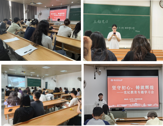 (通讯员 唐皮婷 彭君)4月26日,学院服装系、电子系、机械系研究生党支部联合开展以“坚守初心,铸就辉煌”为主题的党纪学习教育专题学习会。