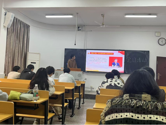 机械系研究生党支部书记罗天宇主讲专题党课,介绍了党的二十届三中全会公报要点。