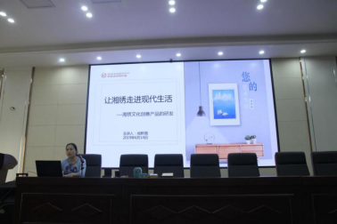 湖南省湘绣研究所刺绣生产部主任、高级工艺美术师、中国刺绣艺术大师成新湘,在讲座开篇讲到,湘绣文化创意产品研发的必要性。研发湘绣文化创意产品,符合国家文化复兴战略要求,是行业发展、非遗传承发展的需求,是企业生存竞争的必选之路。湘绣文化创意产品从某种意义上讲,是将传统的湘绣文化日用品提质升级,在实现非遗保护与文化传承的同时,也让更多的消费者能够享用更多高品质有中国气质的生活美物。讲座最后,成新湘大师结合多年的创作经历,将湘绣文化创意产品的开发与设计经验及技巧与学员们交流互动,并将办公学习用品、电子产品、饰品、家居装饰品的文创产品与学员们进行分享。