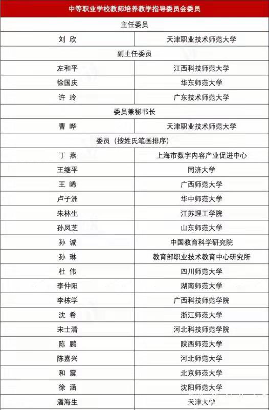 近日,教育部下发了《教育部关于成立国家教师教育咨询专家委员会、2019-2022年教育部高等学校幼儿园教师培养等教学指导委员会和第四届全国教师教育课程资源专家委员会的通知》(教师函﹝2019﹞5号),公布了国家教师教育咨询专家委员会、2019-2022年教育部高等学校幼儿园教师培养等教学指导委员会和第四届全国教师教育课程资源专家委员会委员名单。我院院长李仲阳教授入选国家中等职业学校教师培养教学指导委员会委员。