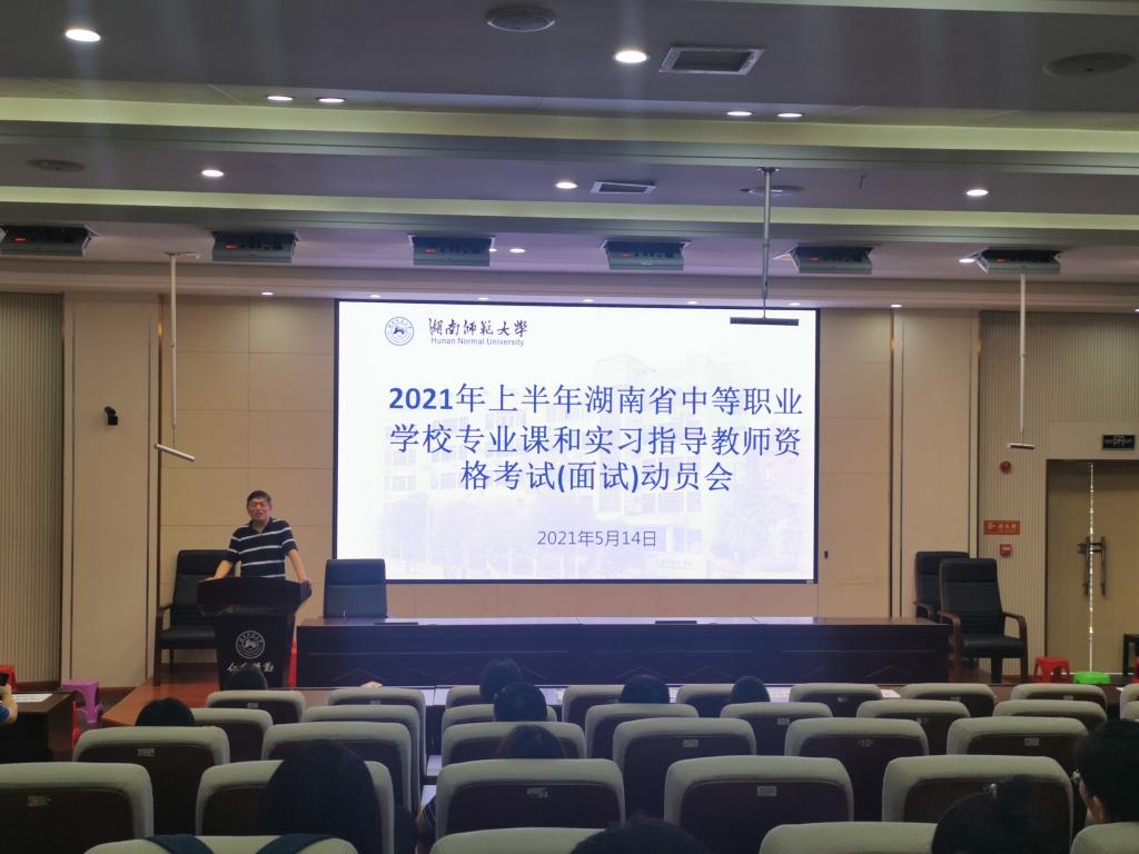 (通讯员 曾锦意)2021年5月14日下午,2021年湖南省中等职业学校专业课和实习指导教师资格考试(面试)动员暨考务培训大会在英国365集团公司报告厅召开。英国365集团公司院长李仲阳、副院长彭可、党委副书记雷道金出席会议,会议由英国365集团公司院党委书记刘小娟主持。