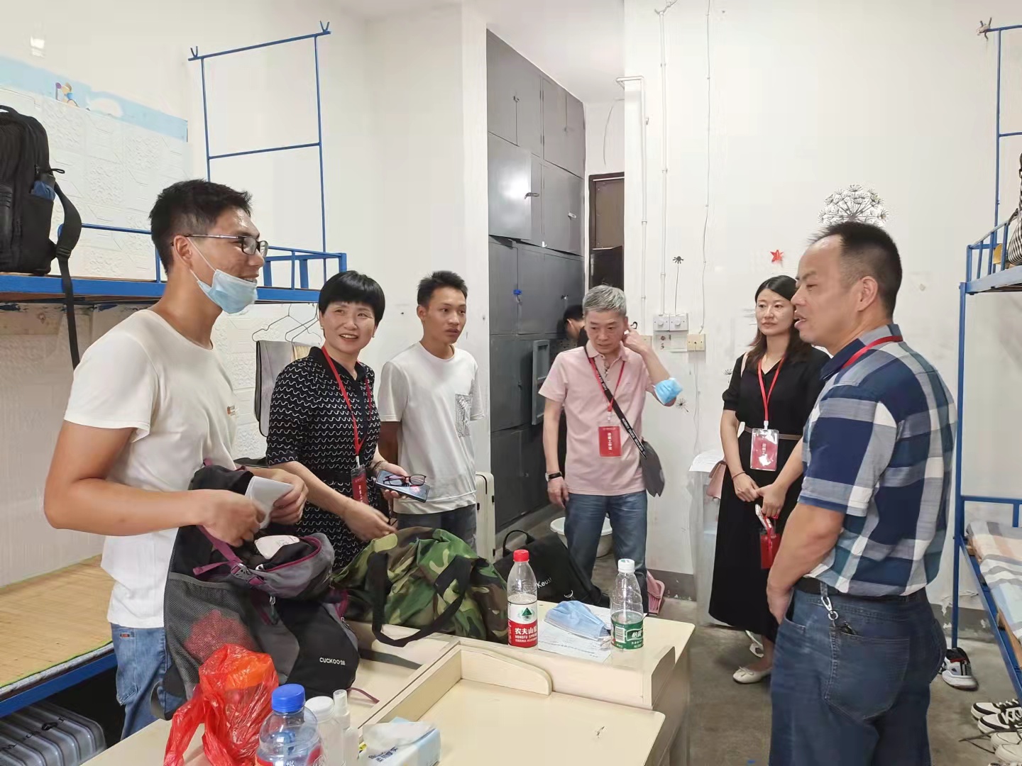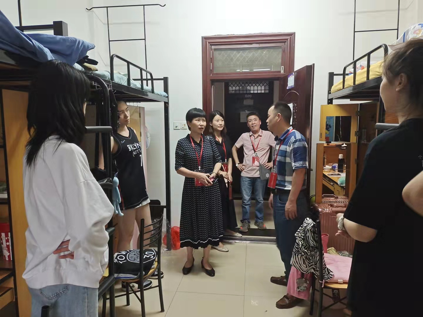 黄丽萍深入到寝室查看了宿舍环境和内务整理情况,表示学校一直致力于学生宿舍环境和硬件的改善,努力为大家创造更好生活环境。在与新生交流时,她详细了解了新生关于大学的规划,鼓励大家在大学新起点上积极调整心态和状态,悦纳自己和他人,笃实学习和实践,以良好的精神面貌迎接军训和大学生活,同时提醒同学们注意安全。