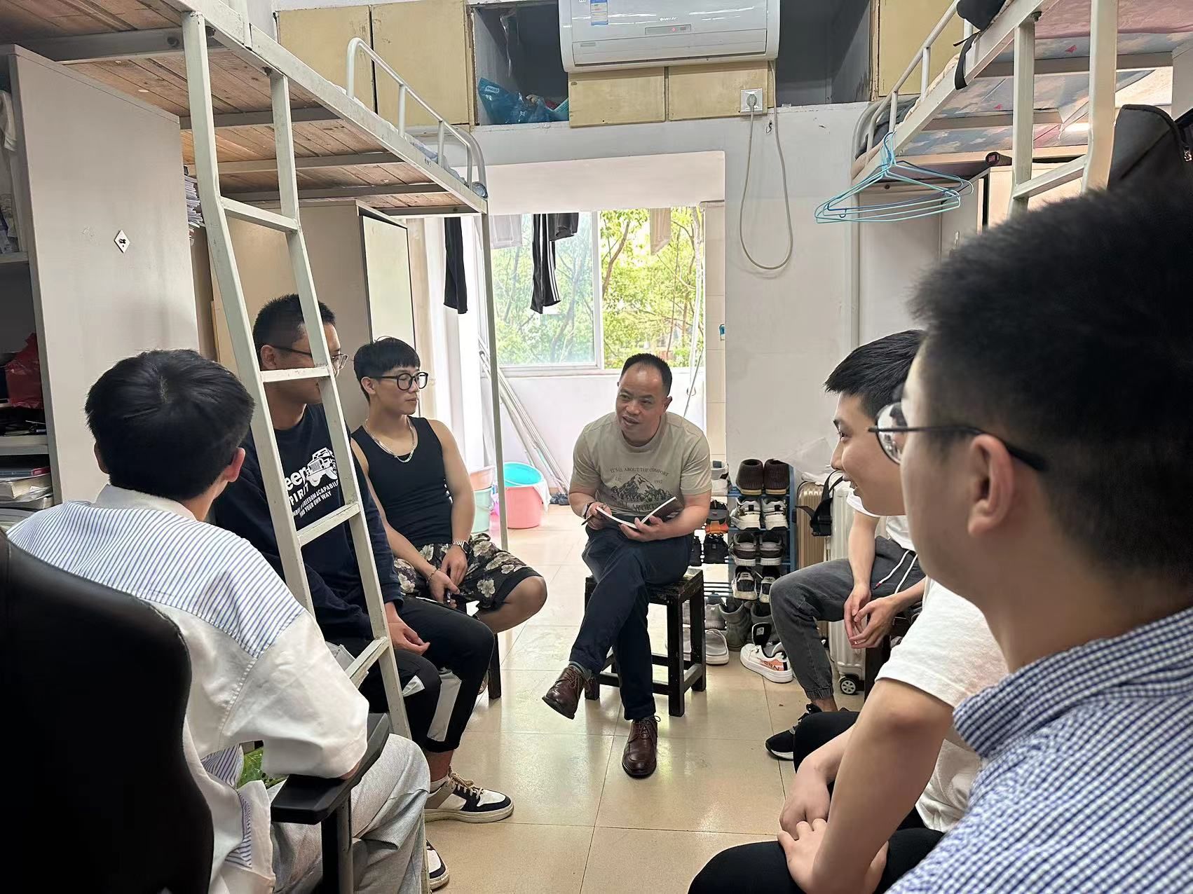 座谈会后,雷道金前往毕业生寝室调研。