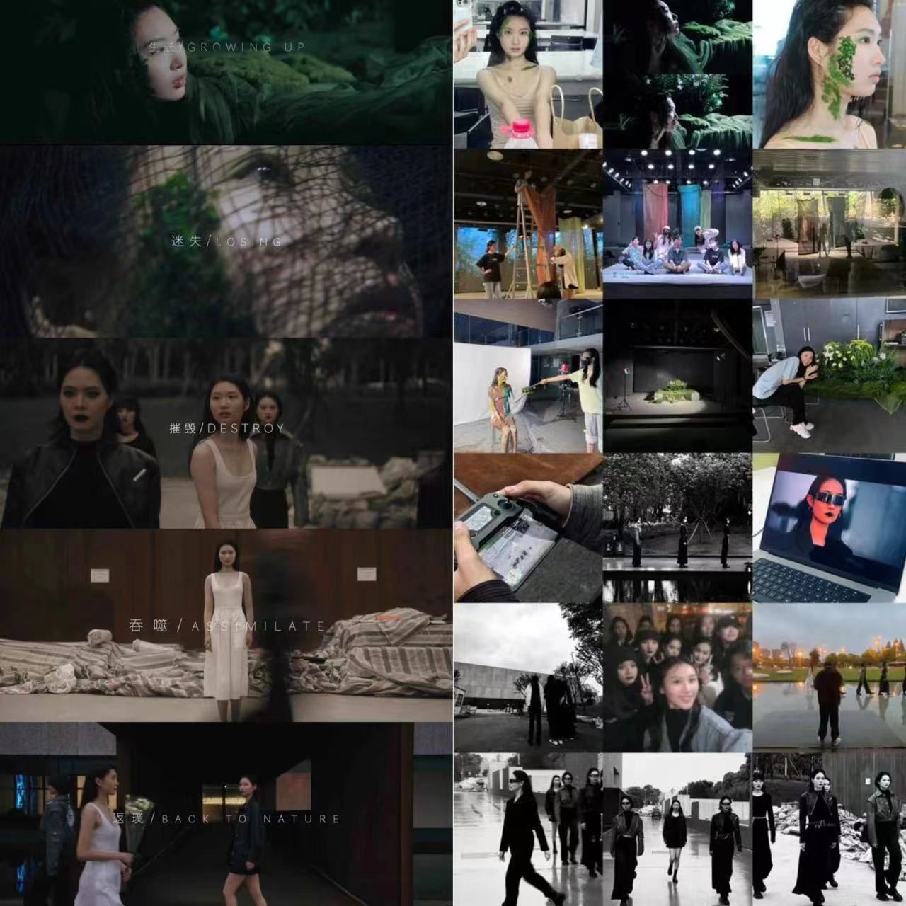 全国一等奖作品《R·A·N|自然而染》,以“可持续时尚”为主题,以“植物染”为切入点,旨在向大家传递“万物生长于自然,终归于自然”的概念。创作团队经过前期的思维发散、审美积累、调研分享;中期的逻辑梳理、拍摄设计、制片选角;后期的拍摄实践、剪辑配乐、视频包装等过程,利用植物拟人化的手法创新创作,借助服装的色彩对比、模特的状态对比等,突出天然与化工碰撞,是学生把课堂学习与专业实践和社会热点紧密融合创作出的反应社会现象的时尚短片,以此呼吁大家关注染料生产过程中所带来的利与弊。
