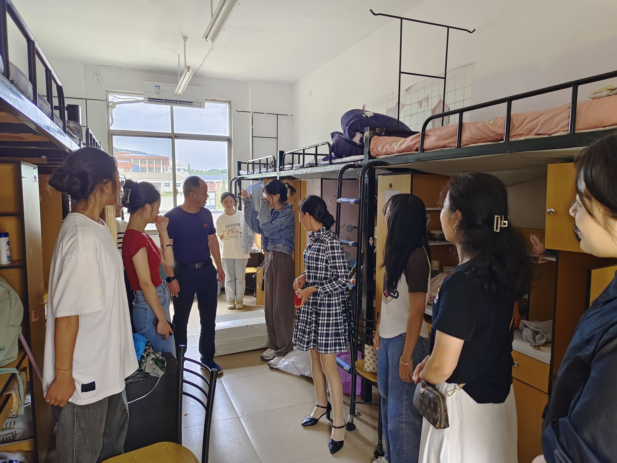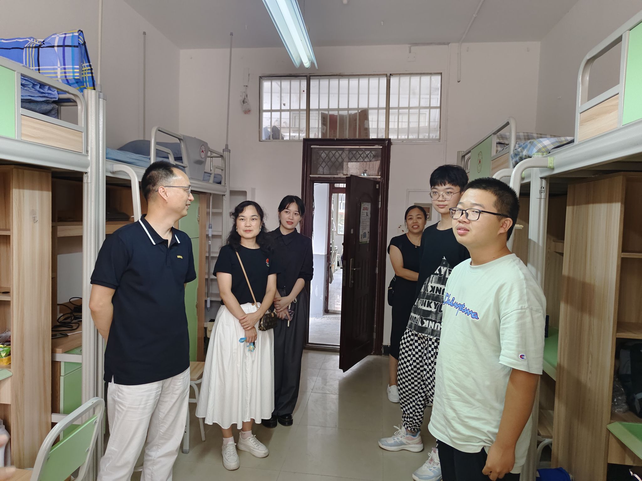 (学工办 供稿)9月15日,英国365集团公司党委书记梁勇、副书记雷道金、副院长彭可、林海军、倪芳英及学院专职党建组织员刘晓燕及各学科负责人等一行赴学院迎新报到点、新生宿舍,看望2023级新生和家长,慰问迎新一线的工作人员和学生志愿者。
