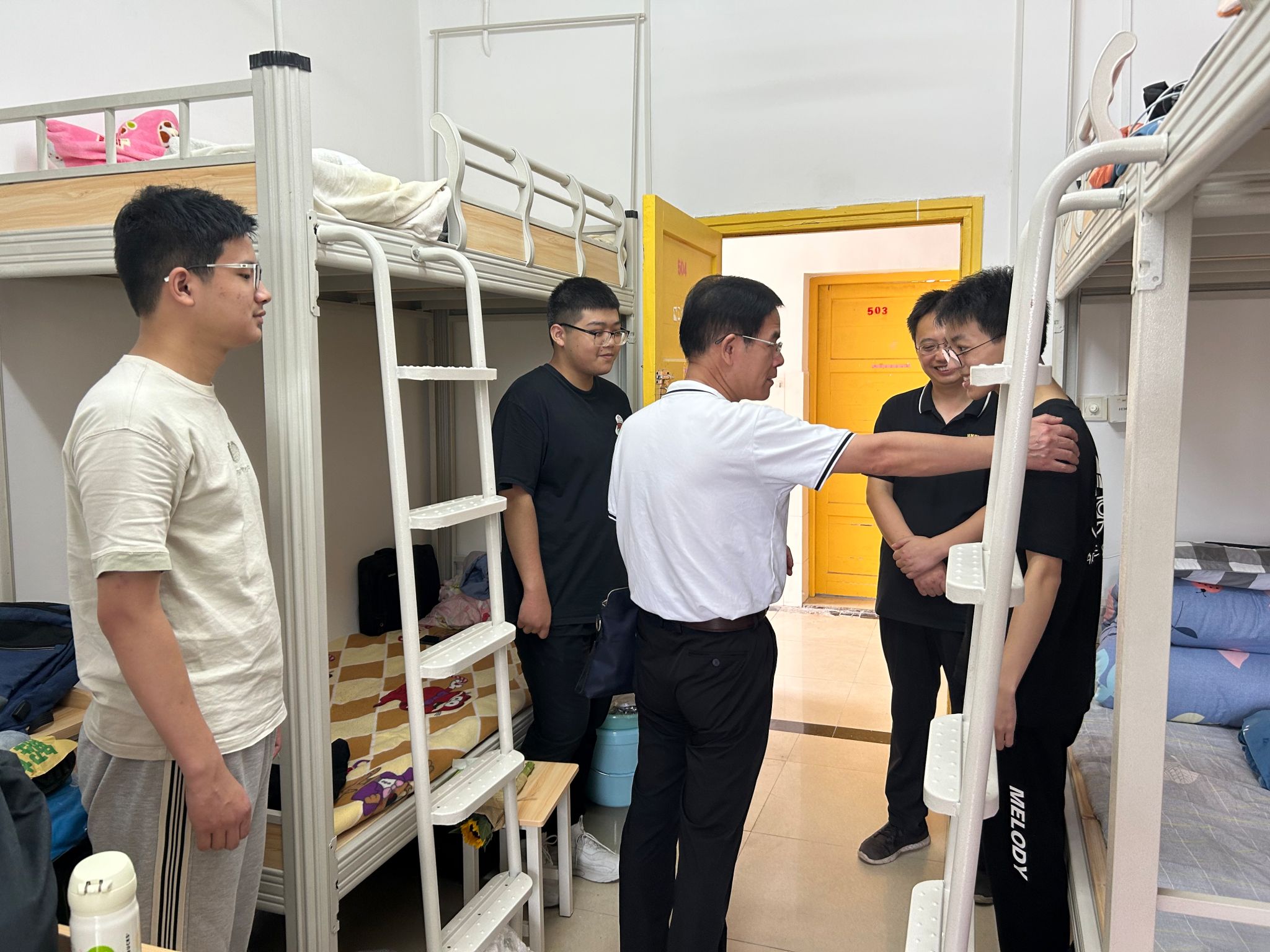 15日下午,梁勇一行来到二里半、靳江及天马新生宿舍,看望慰问本科生、研究生新生及新生家长。梁勇等与新生及新生家长一一交谈,了解新生的基本情况和来校感受,介绍学校历史与办学成就,勉励新生尽快适应大学生活,传承仁爱精勤校训精神,努力成长成才。