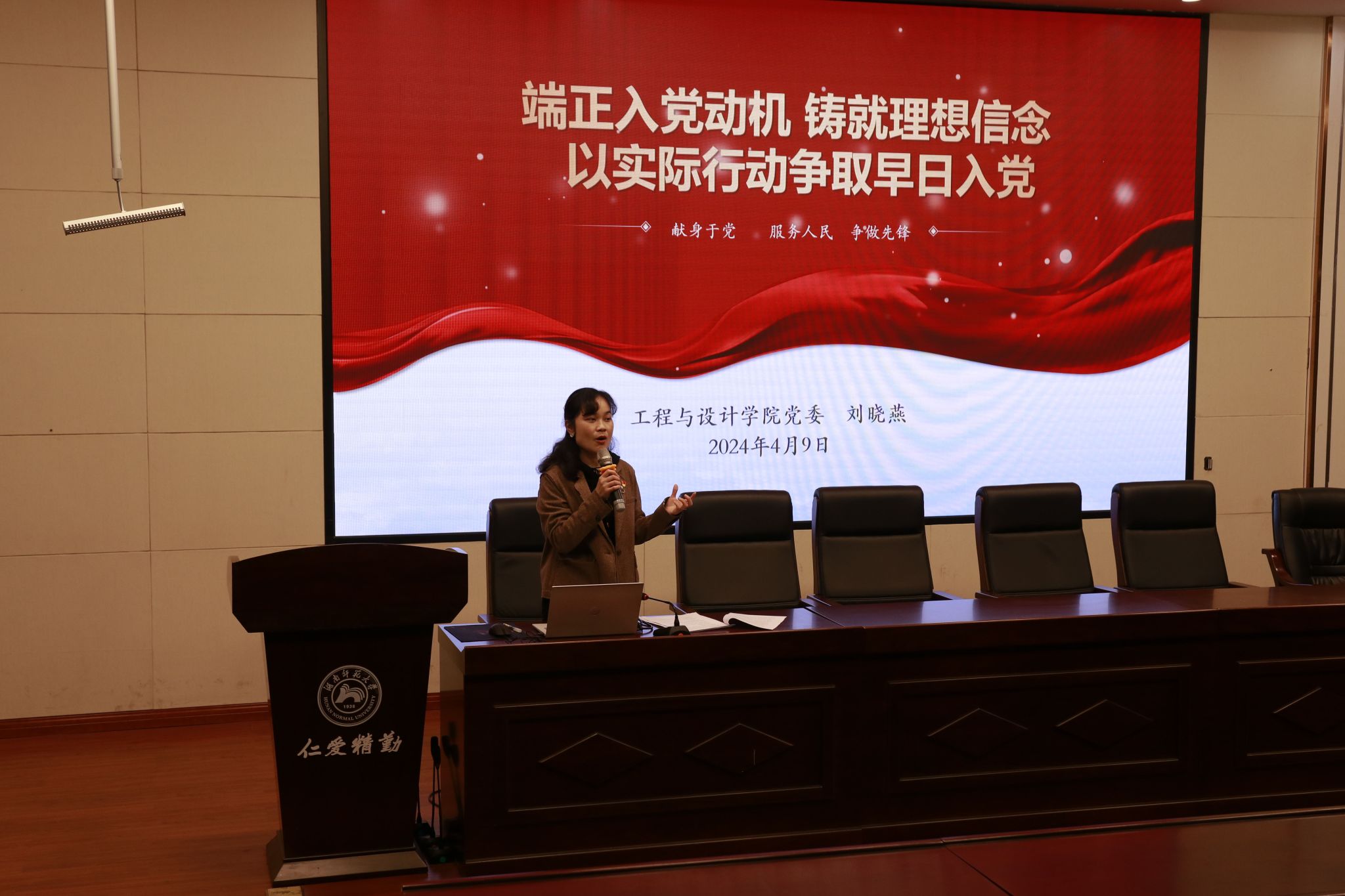 开班仪式后,刘晓燕老师以《端正入党动机 铸就理想信念 以实际行动争取早日入党》为主题,为本期入党积极分子培训班学员讲授首场专题党课。