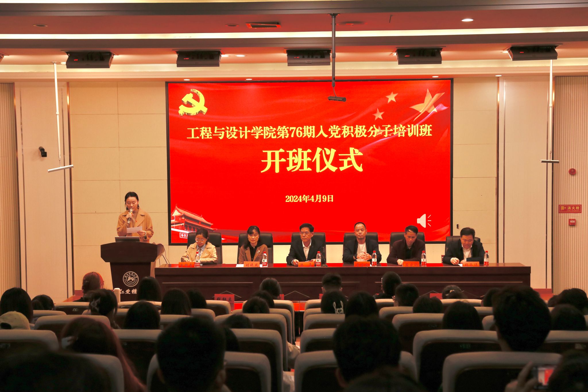 学院科研与研究生办主任庞爱卿、组织人事秘书曾锦意、学工办主任张永涛、全体辅导员及第76期111名入党积极分子参加开班仪式。