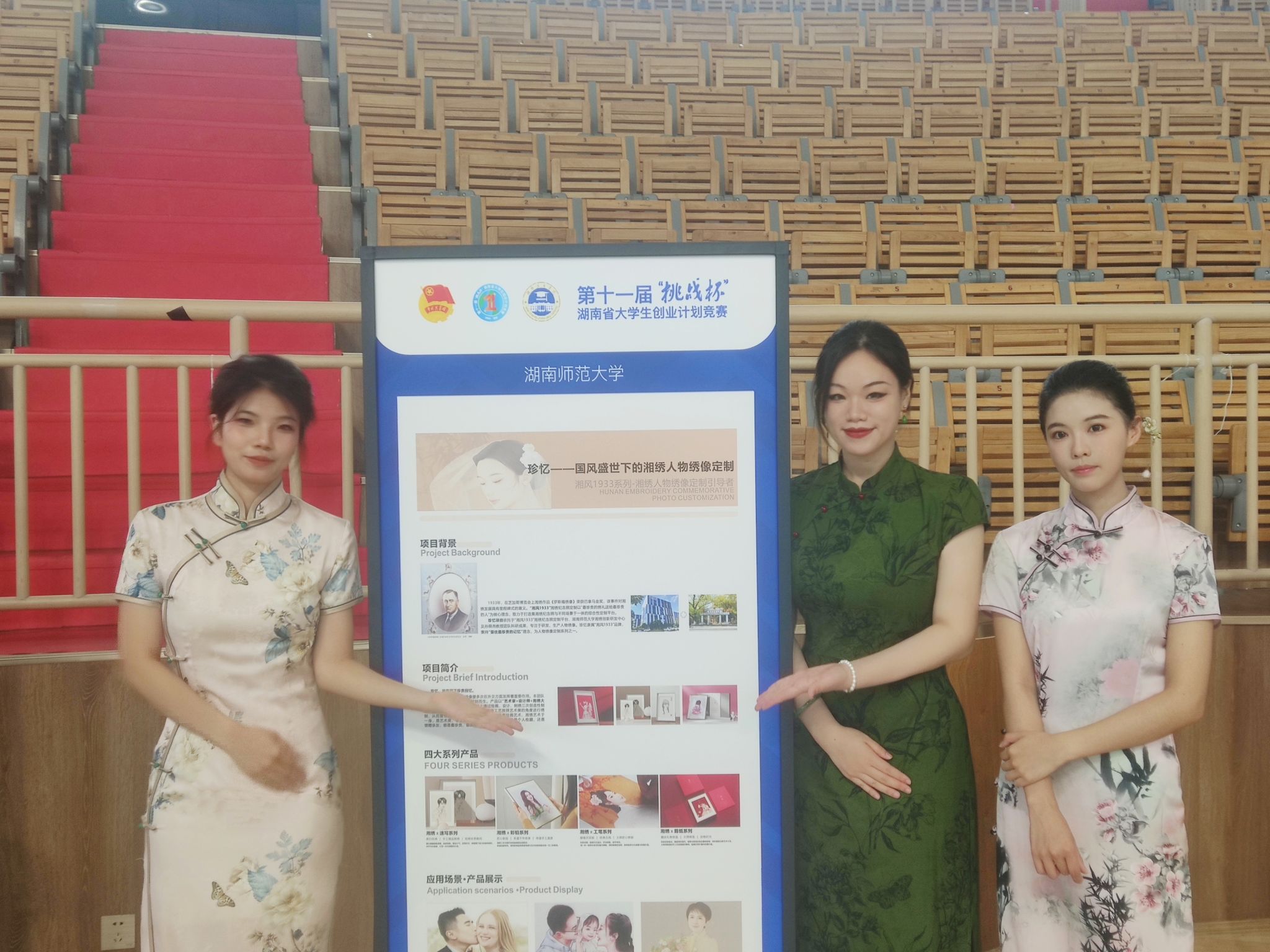 (通讯员 张杜豆)近日,第十一届“挑战杯”湖南省大学生创业计划竞赛在长沙圆满落幕。我院艺术系胡献雯老师指导,2021级视觉传达设计专业马朵等学生团队与学院湘绣创新研发中心联合项目“珍忆—国风盛世下的湘绣人物绣像定制”斩获省赛金奖。