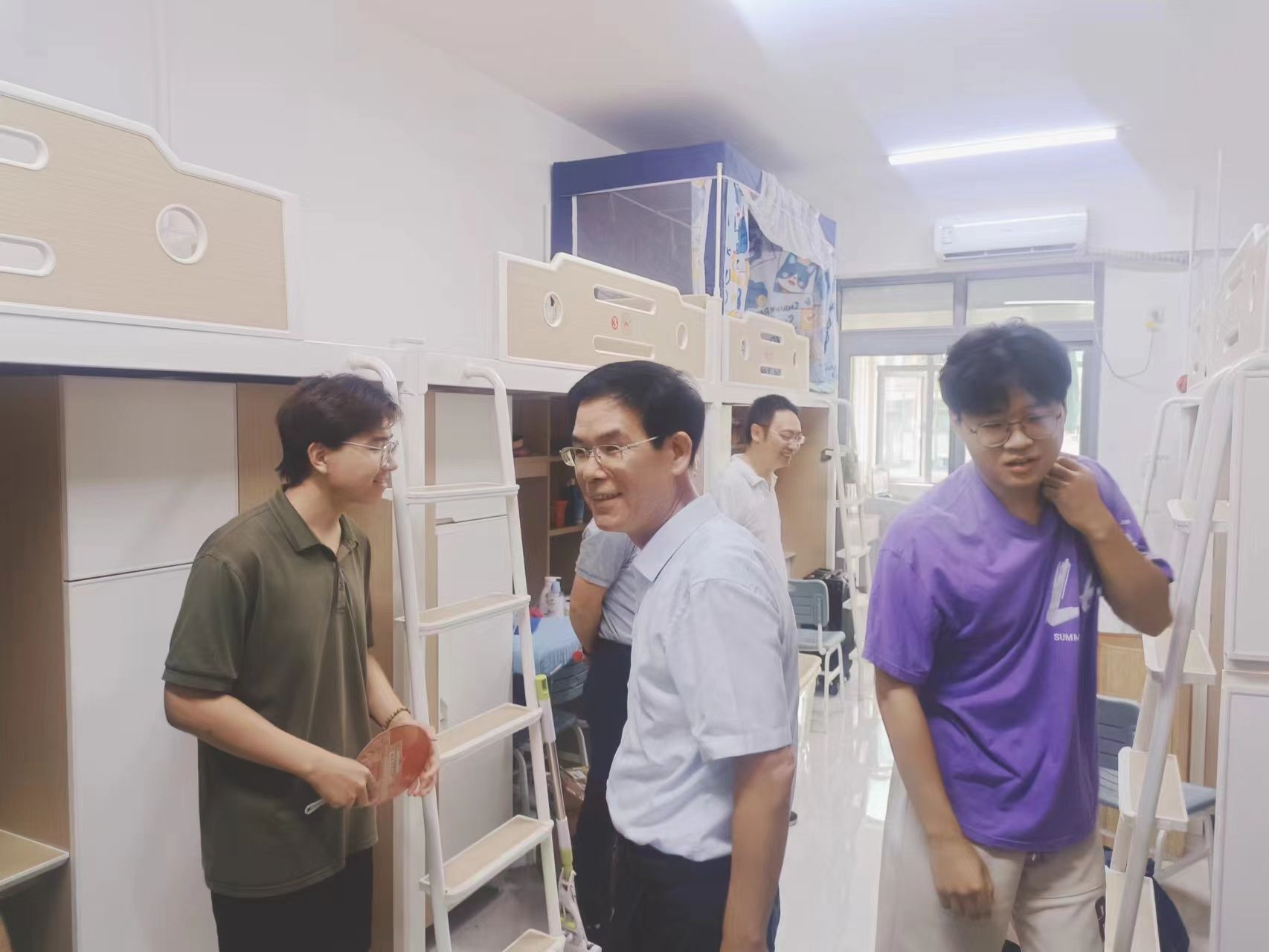 学院领导一行来到桃花坪校区、南院及天马新生宿舍,看望慰问研究生、本科生新生及家长。询问他们的入学感受和生活需求,鼓励他们尽快融入新环境,适应大学生活,珍惜大学宝贵的时光,努力学习、拼搏奋进,积极参加各种社会实践活动,不断提升自己的综合素质,书写人生更加精彩的篇章。
