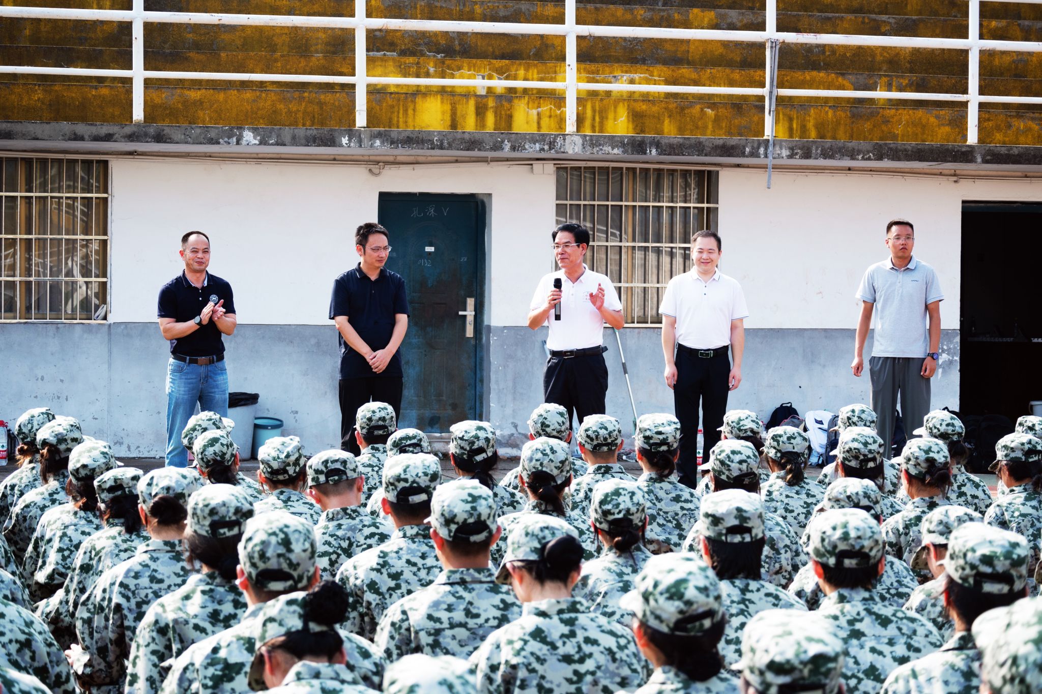 烈日炎炎,情意如微风拂面。林海军、梁勇详细了解了军训、伤病员及后勤保障情况,对学院军训工作表示肯定。梁勇代表学院党委、行政,对正在参训的2024级本科生致以诚挚的问候。他表示,军训是磨练纪律性、意志力和执行力的过程,天气炎热,大家都辛苦了,但仍能从大家身上看到精神集中、意气风发、细致入微的精神风貌,也能看到大家在一点一点的进步,希望大家能够听从指挥、坚持不懈、刻苦努力,以前辈们取得的优异成绩为榜样和指引,续写属于工设院的新篇章。