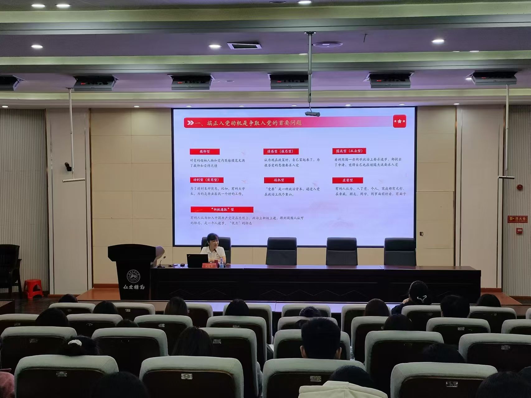 开班仪式后,刘晓燕老师为本期入党积极分子培训班学员讲授题为《端正入党动机 铸就理想信念 以实际行动争取早日入党》的首场专题党课。