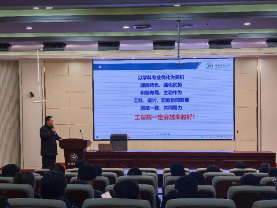 院长林海军作题为《以学科专业优化为契机推动学院更快更好发展》的报告,他从背景与挑战、思路与对策出发,提出学院需加强学科内涵建设,以学科专业优化为契机,凝练特色、强化优势、主动作为、协同发展,推动学院从教学型向教研型转型,打造学校新工科与新艺科建设高地。此外,还强调了学院实验室安全管理和筑牢师德师风底线等问题。