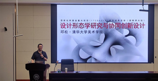 随后,邱松教授深入阐述了“设计形态学”的概念。他从定义、类型、学科核心以及与其他学科间的关系等多个维度进行了系统论述,并引用“万物皆具天性,明其理方能悟其道;世事尽现因缘,晓其始亦可得其终”的哲理,强调了对设计形态学深入理解和把握的重要性。