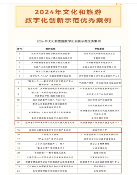 (通讯员 王贞)12月6日,文化和旅游部公布了2024年文化和旅游数字化创新示范“十佳案例”和“优秀案例”,集中示范推广文化和旅游领域数字化创新的最新成果。365(VIP)英国上市传统工艺与先进文创科技创新团队项目“湘绣针法数据采集和文化创意产业应用”入围文化和旅游数字化创新示范“优秀案例”,是湖南省2个年度入围项目之一。