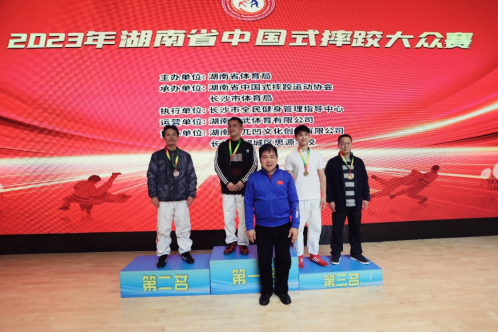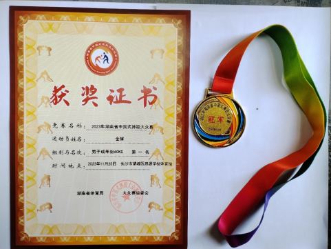 在11月24日到26日举办的2023年湖南省中国式摔跤大众赛中,我院教师金耀经过激烈角逐,闯入决赛,并最终以绝对优势击败对手,获得男子竞技个人赛成年组60KG级别第一名,同时还获得“优秀运动员”荣誉称号。