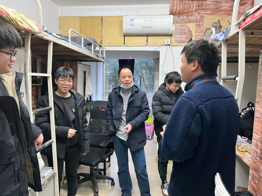 每走访一间寝室,雷书记都仔细询问学生寒假生活学习情况,叮嘱学生返校后疫情防控不松懈,个人规划不放松,尽快调整好状态进入新学期学习实践。他还提醒同学们,要关注近来长沙天气变化,及时增添衣物,做好防寒保暖,严禁使用违规电器,创建平安寝室、平安校园。