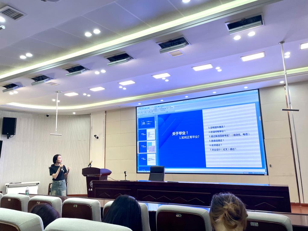 辅导员肖坤洪分享了自身求职经历,强调了就业安全,并就毕业生日常管理和近期毕业年级工作进行了布置和安排。