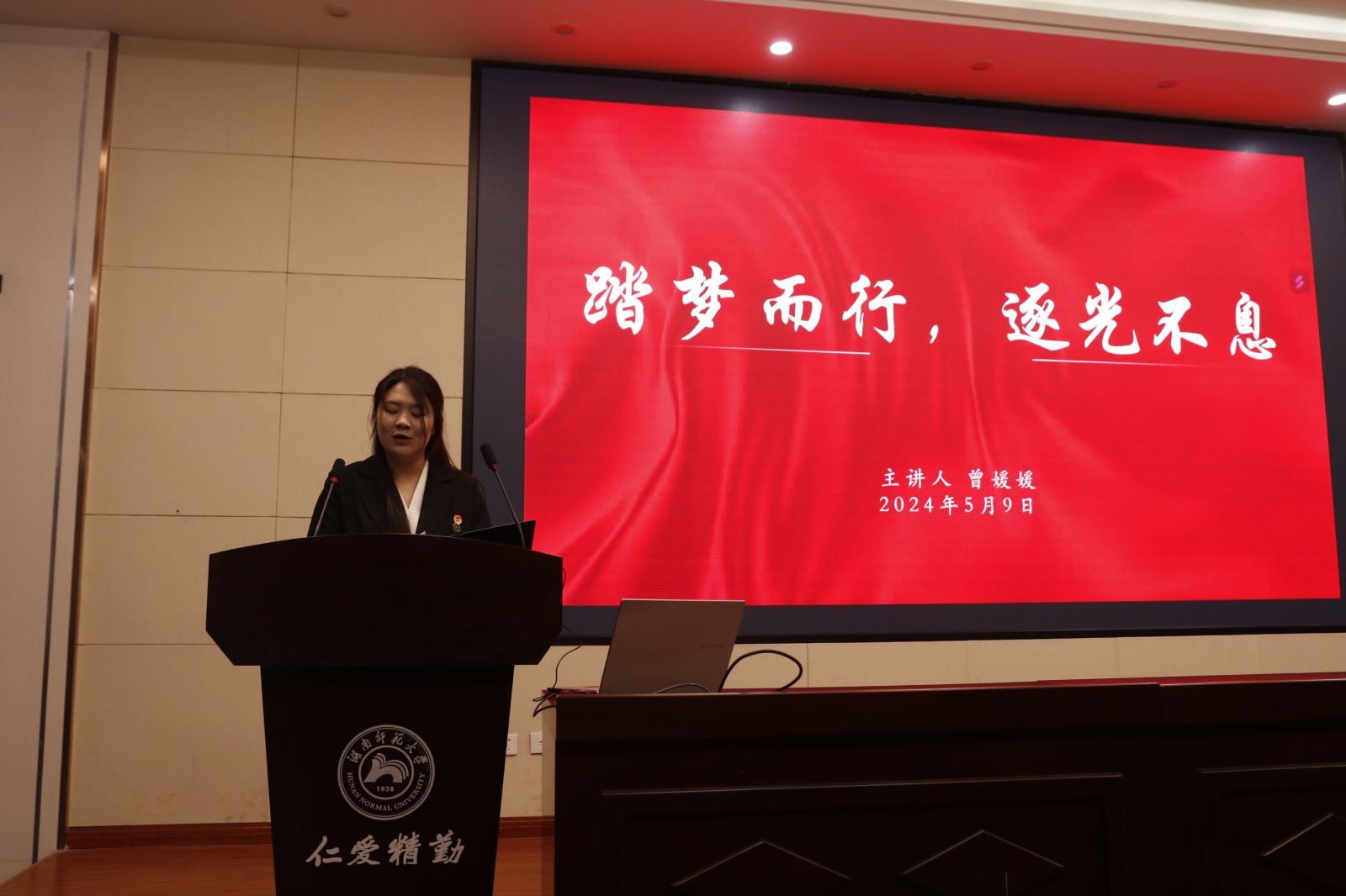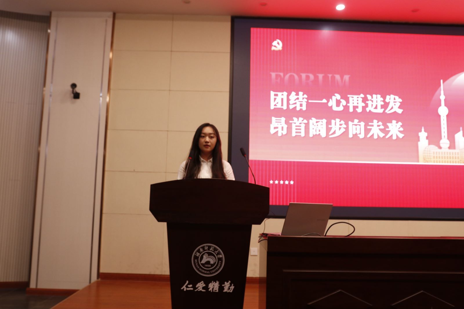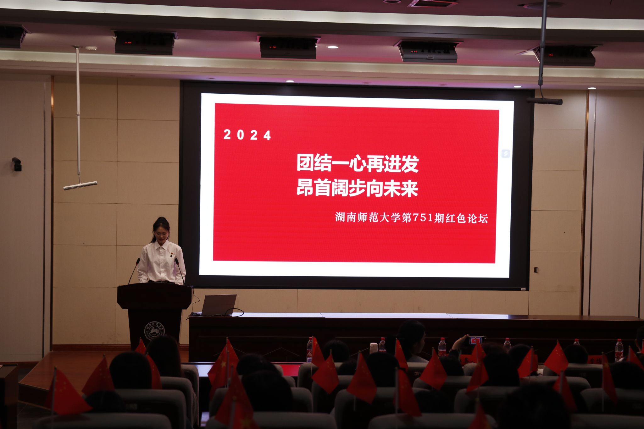 (通讯员 张婧文 申梦博)5月9日中午,以“团结一心再进发,昂首阔步向未来”为主题的学校第751期红色论坛在学院后栋报告厅举行。院党委副书记雷道金,关工委常务副主任孙红英出席。论坛由院团委干部、2023级表演(服装表演)专业张婧文主持。