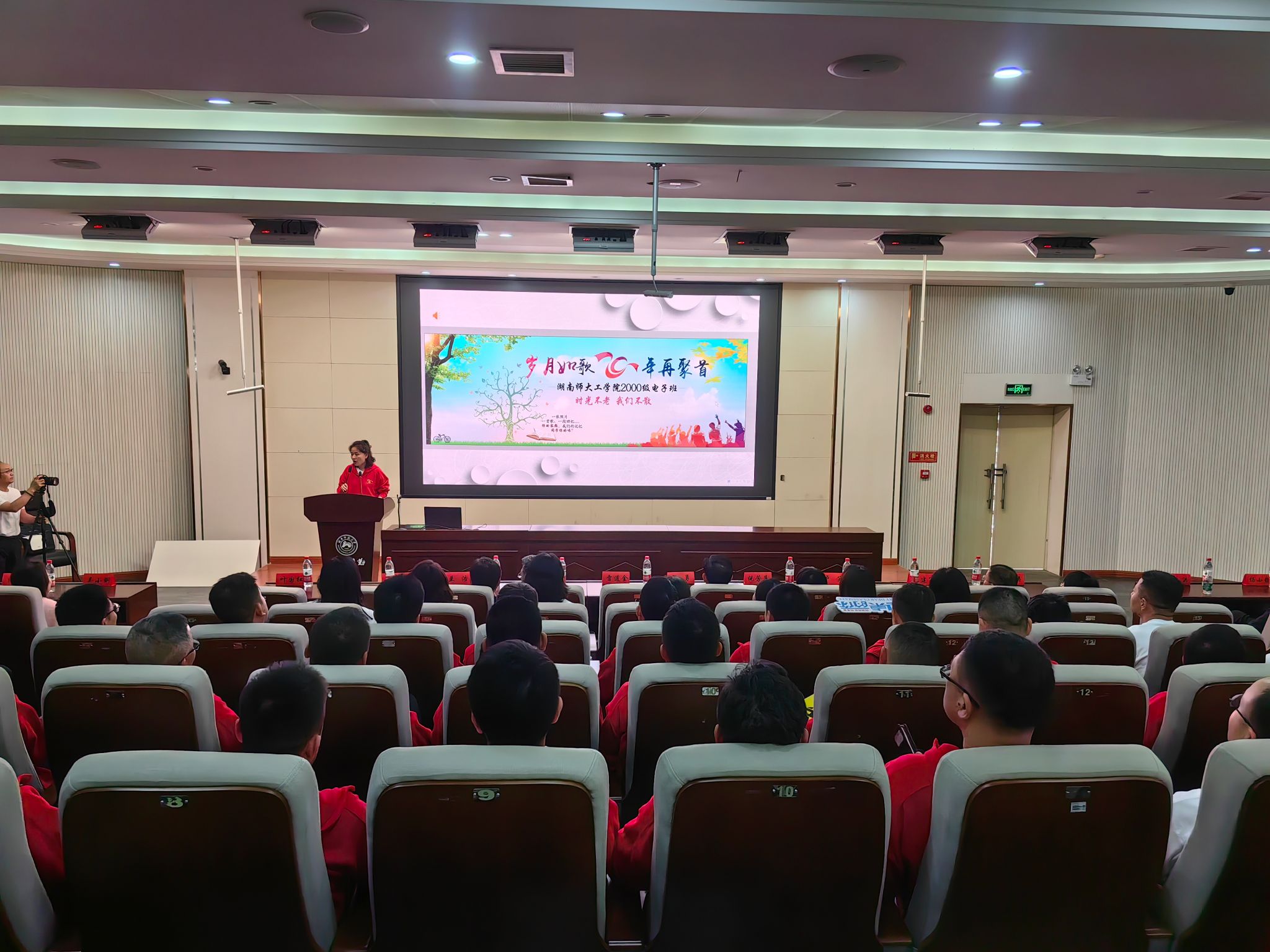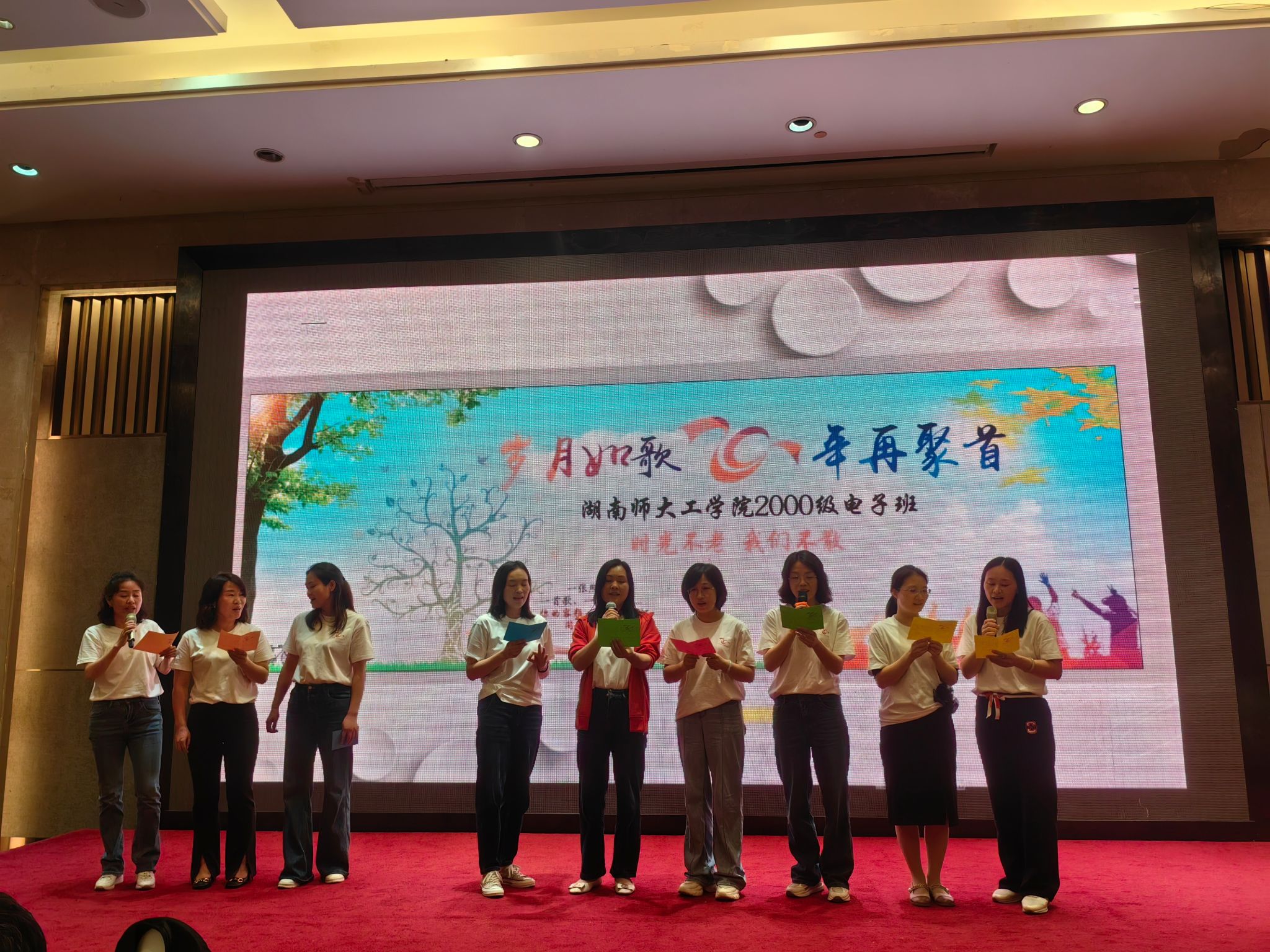 电子系主任卢笑、副主任张建军,专业教师林俊、邓海涛、兰浩,2000级辅导员徐灿、沈晶,电子系退休教师王洪、陈素纯、杨小钨等及学院2000级电子班近70位校友参加活动。