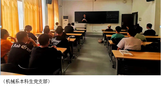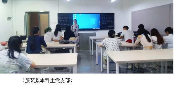 服装系教师党支部书记颜璨、艺术设计系教师党员龙适、艺术设计系本科生党支部“第一书记”张杜豆、机械系本科生党支部“第一书记”肖坤洪分别到联系党支部进行指导并讲话。