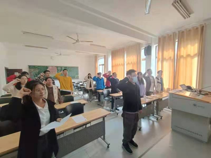 (电子系研究生党支部进行换届选举前的集体宣誓)