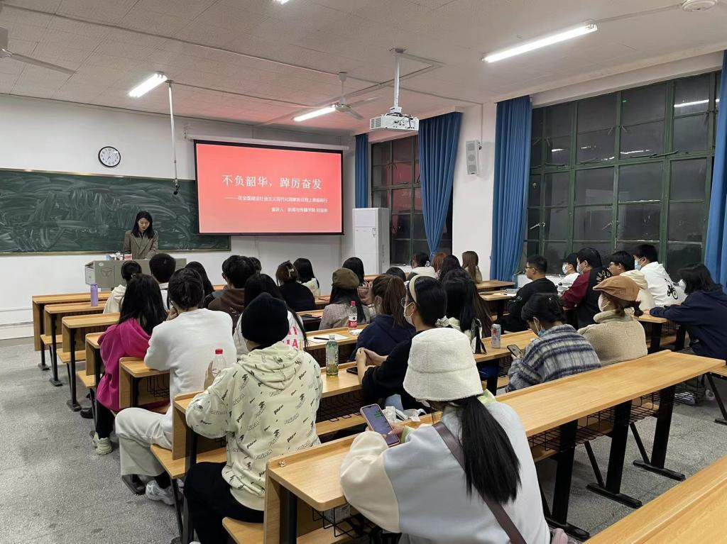 11月24日晚,我院在咸嘉湖校区老图书馆召开学生骨干学习宣传贯彻党的二十大精神宣讲会。会议由我校青年讲师团成员刘慧琳主讲,学办邓萍老师主持。