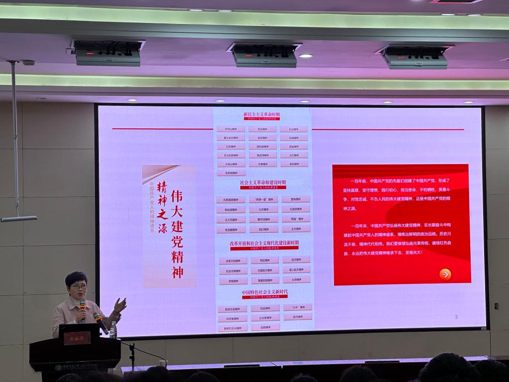 黄丽萍带领青年学生党员们深刻领会党的二十大召开的重大意义,通过深入浅出地讲解“五个牢牢把握”,指导科学把握党的二十大精神的核心要义,并对新征程上新青年的使命任务与责任担当进行了诠释。她慷慨深情地鼓励青年学生党员们应弘扬伟大建党精神,坚定不移听党话、跟党走,坚持正确的人生道路,练就过硬本领,发扬永久奋斗的传统,肩负起新时代新征程的历史使命和责任担当。
