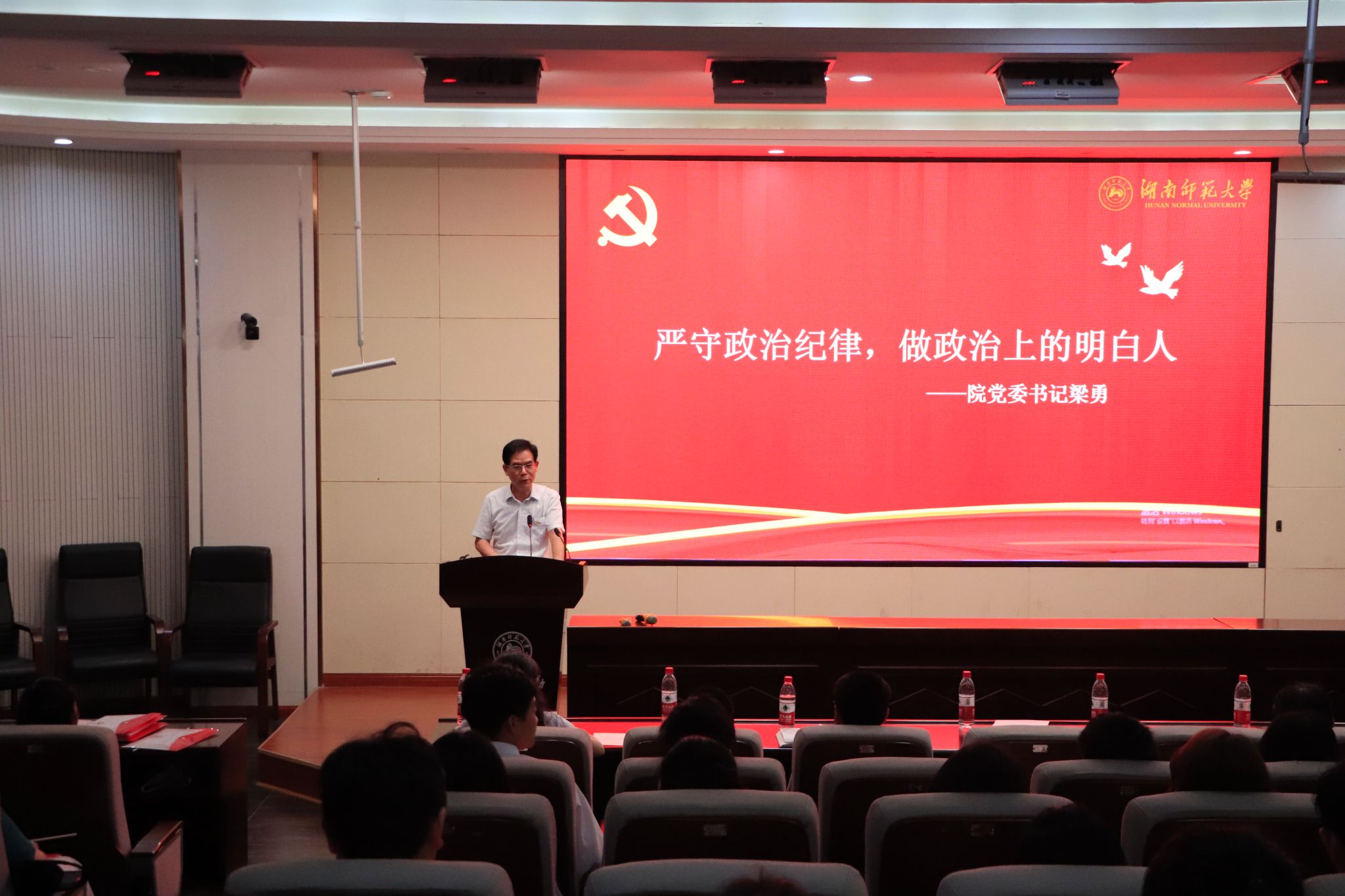 通讯员 申梦博  图 黄璞517日上午,工程与设计学院后栋报告厅党徽熠熠,誓言铮铮,学院2024届毕业生党员“信仰与青春同行”毕业党课活动正在进行中。院党委书记梁勇,院长林海军,院党委副书记雷道金出席,活动由院党委专职组织员刘晓燕主持。