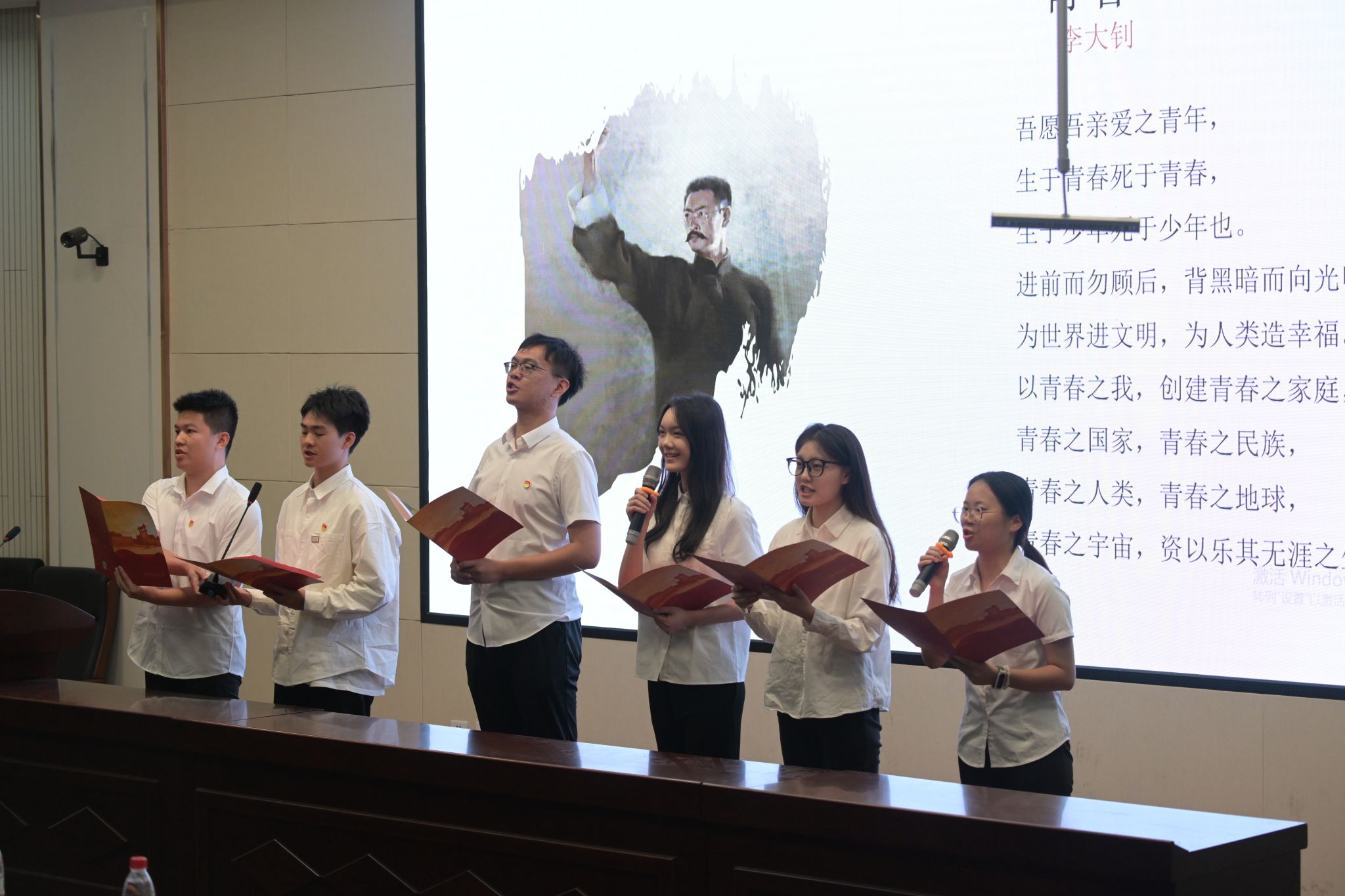毕业生党员代表曹鑫等6朗诵红色诗词,表达对党和祖国的忠诚和热爱之情。