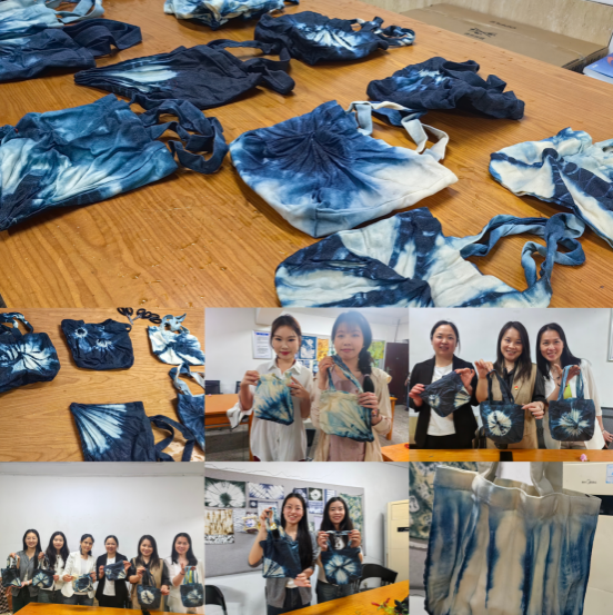 随后的实践体验课堂将理论知识与动手实践相结合,将活动推向高潮。在非遗手工扎染课堂,服装系教工党支部书记、副教授颜璨担任主持人,带领大家深入了解非遗手工扎染文化,涵盖其与中国革命建设的历史渊源、工艺起源、样式特点和制作技巧,还探讨了扎染与科技融合的创新方向。师生们现场体验扎染工艺流程,在动手实践中感受非遗魅力。
