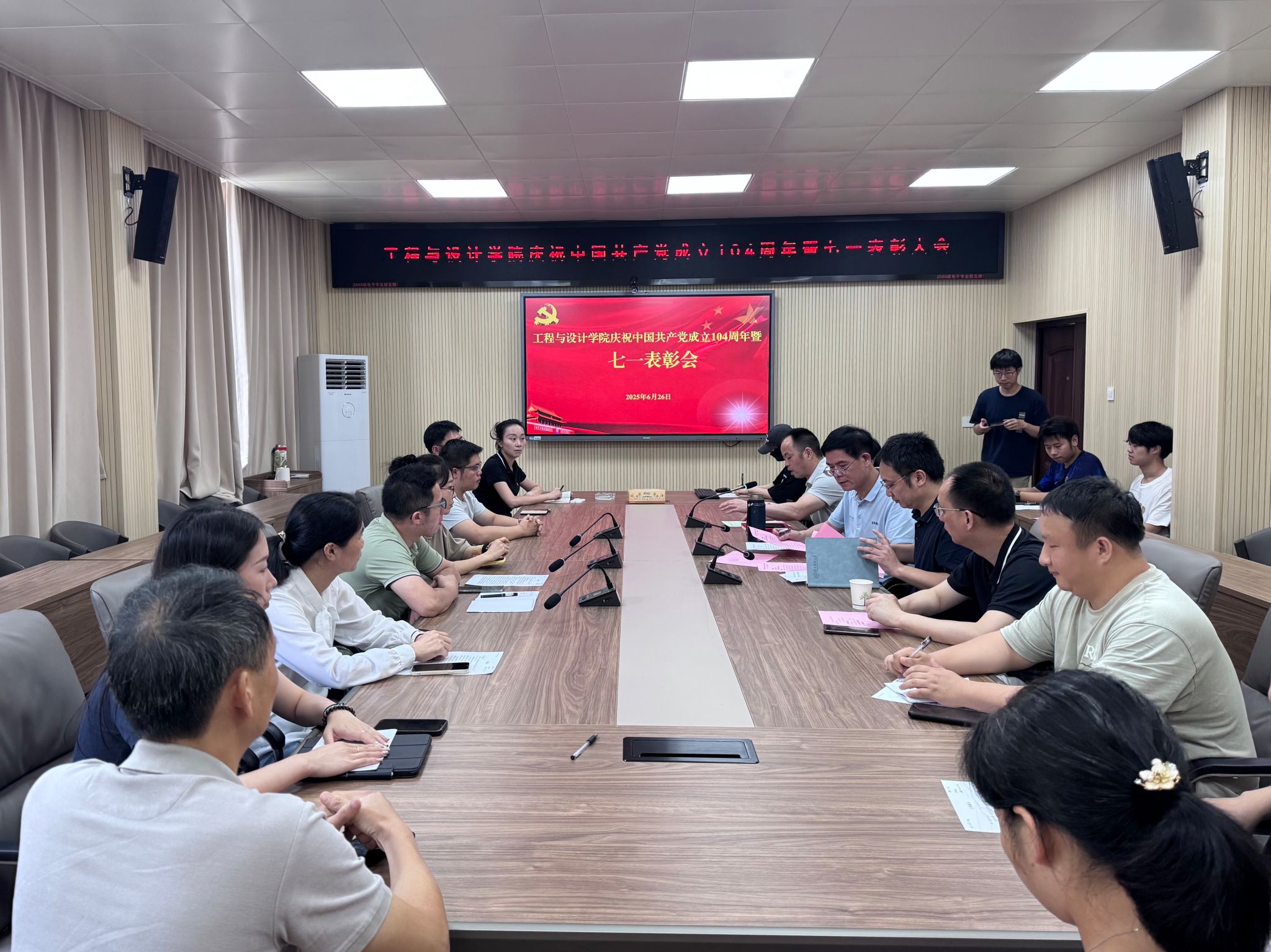 会议在雄壮国歌声中启幕。院团委书记张杜豆带领大家重温入党誓词。院长林海军宣读关于表彰学院2023-2025年度优秀共产党员和先进基层党组织的决定。学院领导为获奖代表一一颁奖。