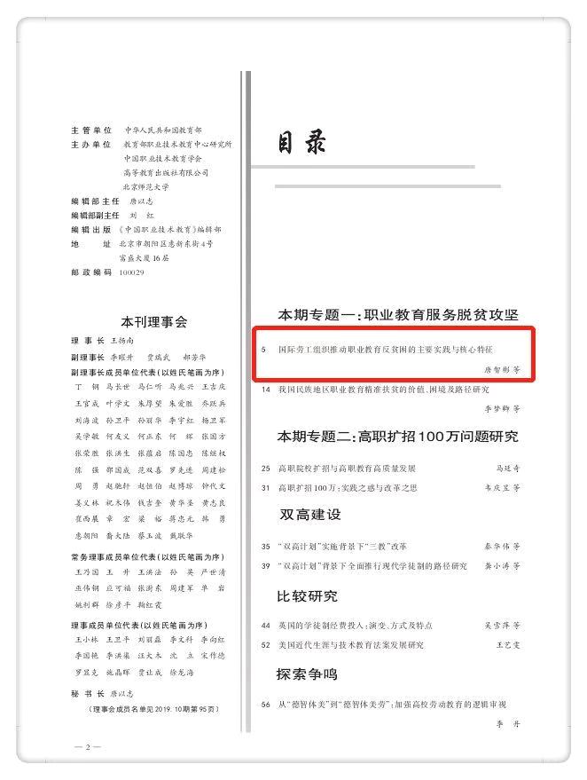 近日,我所副教授唐智彬博士与研究生谭素美在《中国职业技术教育》(2019年第33期)发表论文《国际劳工组织推动职业教育反贫困的主要实践与核心特征》,该文是2019年度教育部人文社会科学研究规划基金项目“职业教育扶贫的国际经验与中国路径研究”的阶段性成果,项目主持人为唐智彬。