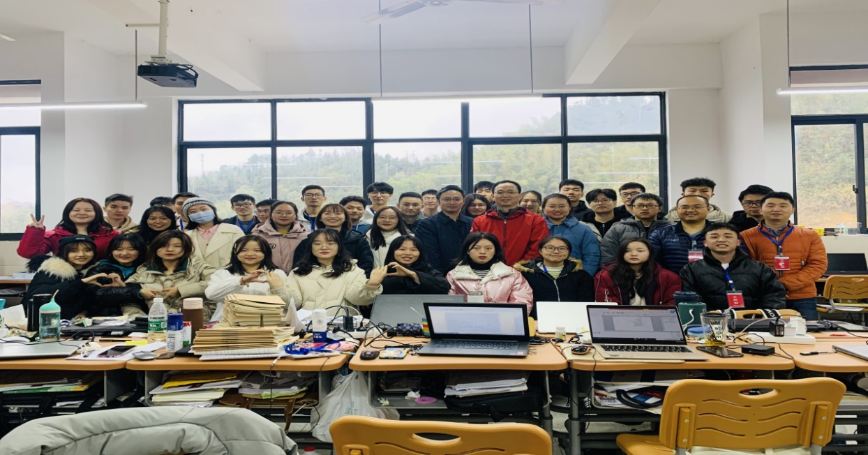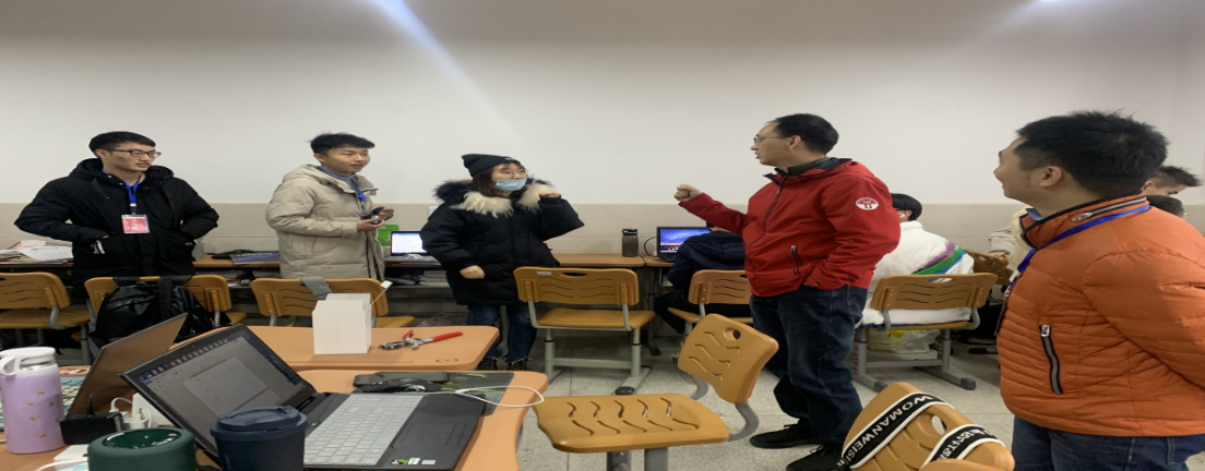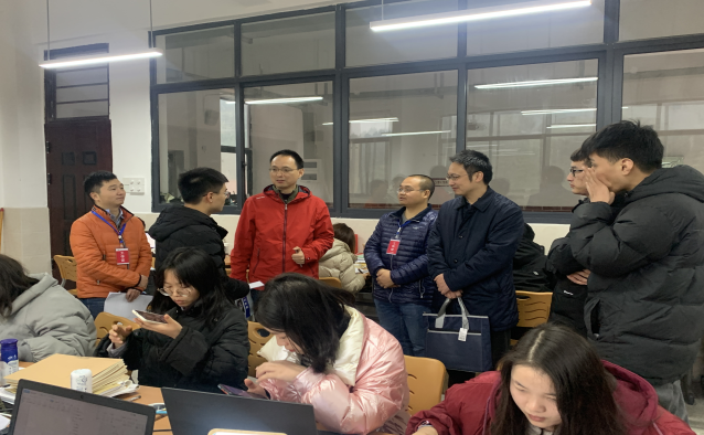 彭院长一行首先听取实习生郑泽元的实习汇报课,随后实习负责人从班主任工作、专业教学工作、创新工作等各方面情况进行汇报。彭院长指出,实习生的汇报课准备充分、内容完整、条理清晰、方法得当、表达清楚、有所创新,他充分肯定了这次教育实习工作,并对带队老师的努力付出表示感谢,并着重强调:“ 要注意保暖、用电安全、住宿环境注意通风,做好疫情防控工作,不可掉以轻心。”
